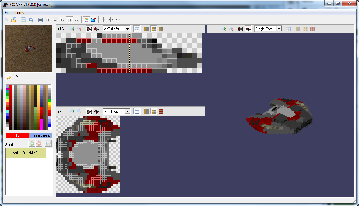 Bear in mind, however, that this is not a replacement for Voxel Section Editor III. Just an alternative, which provides a different interface to edit voxels and its own set of tools. The program allows you to customize the set of views and it has its own way to detect the normal vectors of each voxel. The picture below shows the auto-normals of OS Voxel Section Editor in action, as posted on July 9th: