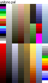 Tiberian sun Infantry shps, along with buildings and voxels, uses the unittem and unitsno palettes. The unittem palette is the palette used on temperat maps and the unitsno is the palette used on snow maps. These palletes are almost identical. Below is an example of each palette.